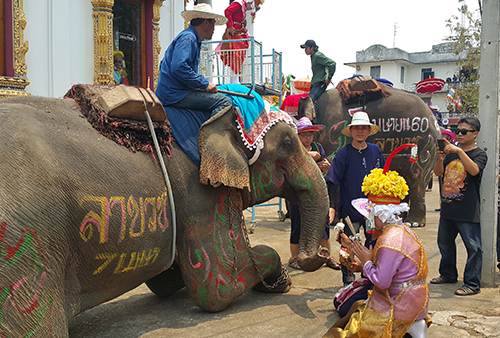 • หากจะถ่ายรูปกับช้าง ควรบอกหรือทำตามคำแนะนำของควานช้าง