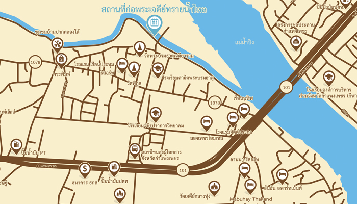 ณ ริมน้ำปิง ใกล้กับวัดพระบรมธาตุเจดียาราม