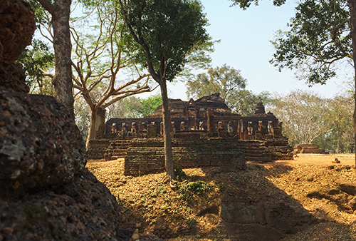 ด้านหน้ามีวิหารหลวง ถัดออกไปมีอุโบสถขนาดเล็ก สถาปัตยกรรมเหล่านี้สร้างสรรค์ขึ้นจากศิลาแลง ซึ่งคงขุดขึ้นมาจากบริเวณนั้น ดังได้พบบ่อขนาดใหญ่ด้านหน้าวิหารหลวง