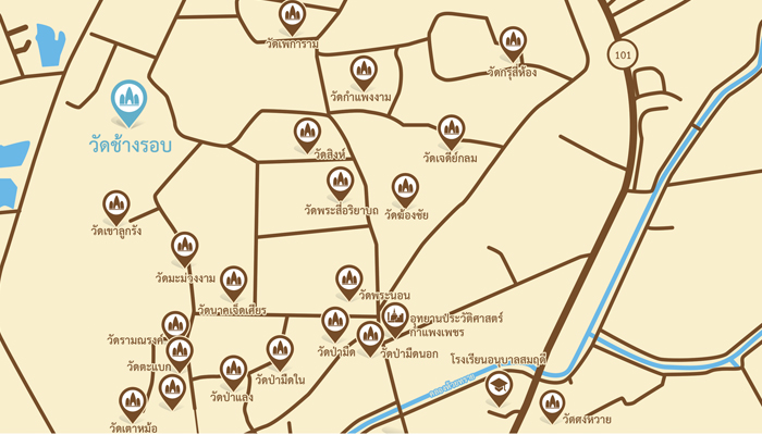 • วัดช้างรอบ ถือเป็นโบราณสถานที่สำคัญแห่งหนึ่ง แต่เนื่องจากเกิดการชำรุดนักท่องเที่ยวควรจะศึกษาข้อมูลมาเบื้องต้นเพื่อให้เข้าใจและสามารถซึมซับประวัติศาสตร์ได้อย่างถ่องแท้