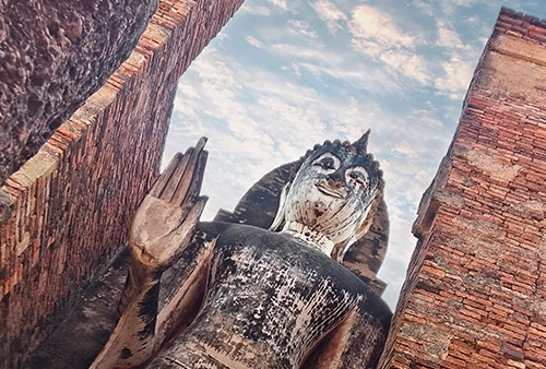 แม้บัดนี้ร่างกายของอาณาจักรสุโขทัยจะเสื่อมโทรมลงตามวันเวลา แต่ลมหายใจของสุโขทัยยังคงแจ่มชัด การได้มาเยือนวัดมหาธาตุจึงเท่ากับเราได้สัมผัสจิตวิญญาณของสุโขทัยซึ่งซึมซาบอยู่ระหว่างอิฐ หิน ปูน ทราย
