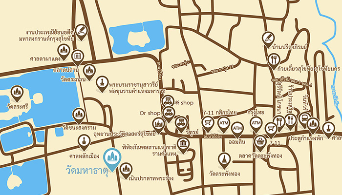 อยู่ในบริเวณอุทยานประวัติศาสตร์สุโขทัย ทางด้านซ้ายของประตูทางเข้าประตูอุทยานประวัติศาสตร์สุโขทัย ณ จุดจอดรถรางที่ 10