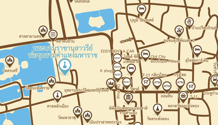 • อนุสาวรีย์พ่อขุนรามคำแหงมหาราช ถือเป็นสถานสักการะที่สำคัญแห่งหนึ่งของเมืองสุโขทัย นักท่องเที่ยวควรจะศึกษาข้อมูลมาเบื้องต้นเพื่อให้เข้าใจและสามารถซึมซับประวัติศาสตร์ได้อย่างถ่องแท้