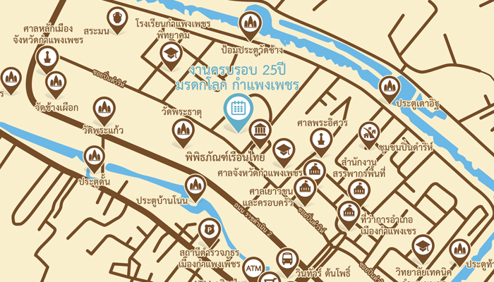 เดินทางจากอุทยานประวัติศาสตร์กำแพงเพชรมายัง งานครบรอบ 25 ปี มรดกโลก กำแพงเพชร ณ พิพิธภัณฑสถานกำแพงเพชร มีระยะทางประมาณ 2.7 กิโลเมตร