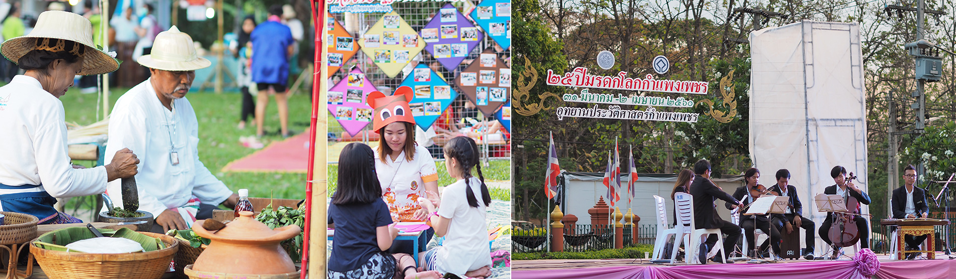 โดยภายในงาน มีการที่สาธิตงานศิลปะและภูมิปัญญาของไทยที่ลานวัฒนธรรม บริเวณพิพิธภัณฑสถานแห่งชาติกำแพงเพชร รวมทั้งกิจกรรมนำชมโบราณสถานในยามค่ำคืน และการแสดงโขนจากวิทยานาฏศิลป์สุโขทัยด้วย