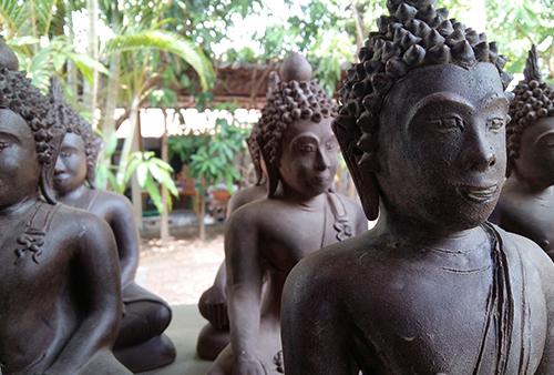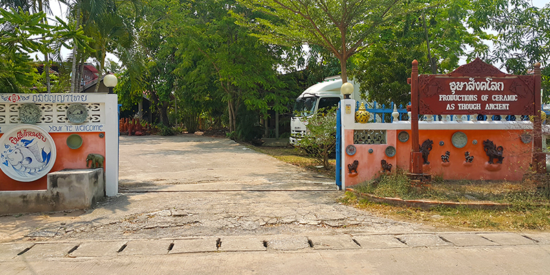 • อยู่ห่างจากประตูทางเข้าอุทยานประวัติศาสตร์สุโขทัยไปยังชุมชนบ้านใหม่ตระพังทอง ประมาณ 750 เมตร เป็นชุมชนที่อยู่ด้านหลังเกาะกลางน้ำวัดตระพังทอง เป็นย่านผลิตงานสังคโลกที่มีถนนงานศิลปะจากสังคโลก (Sangkhalok Street of Art) มองหาป้าย ถนนสังคโลก ร้านจะอยู่บนเส้นถนนสังคโลก