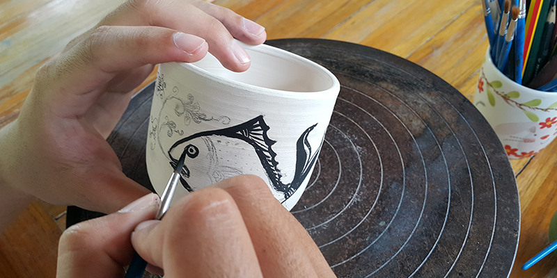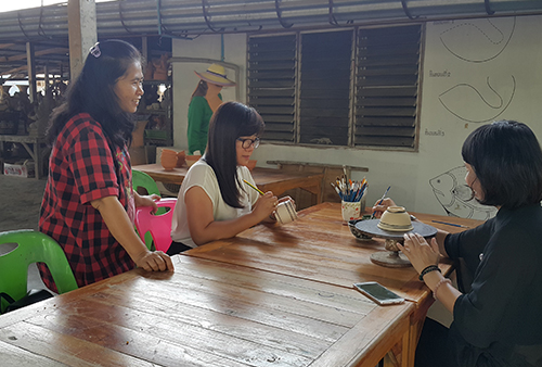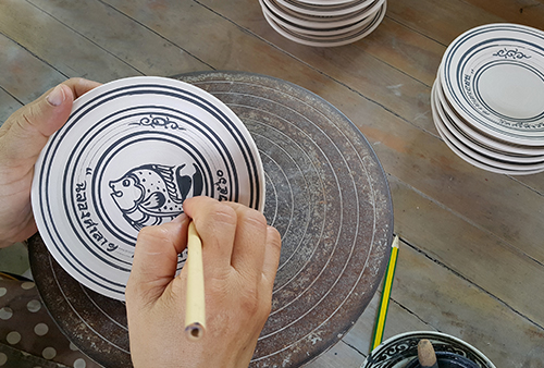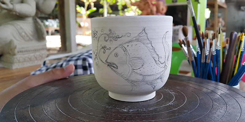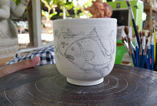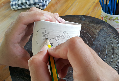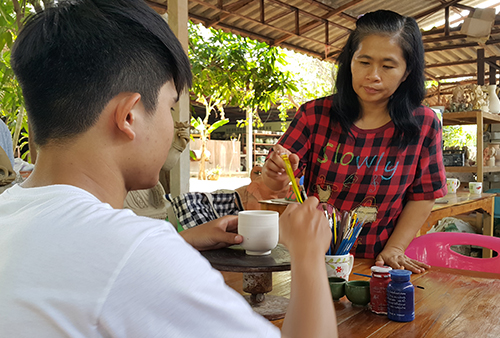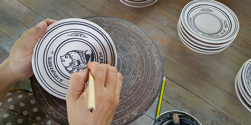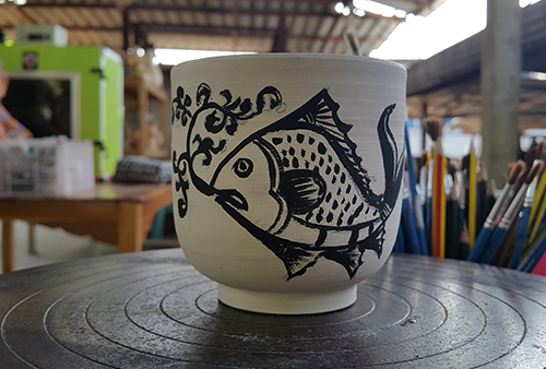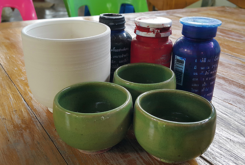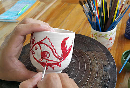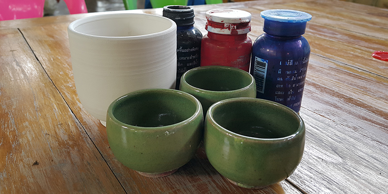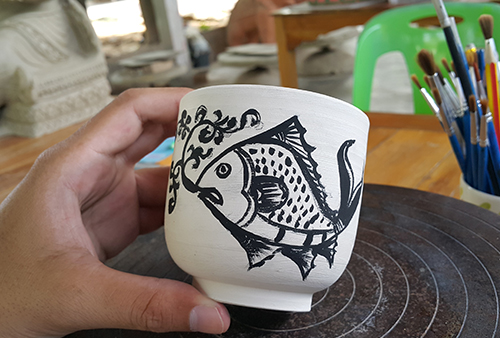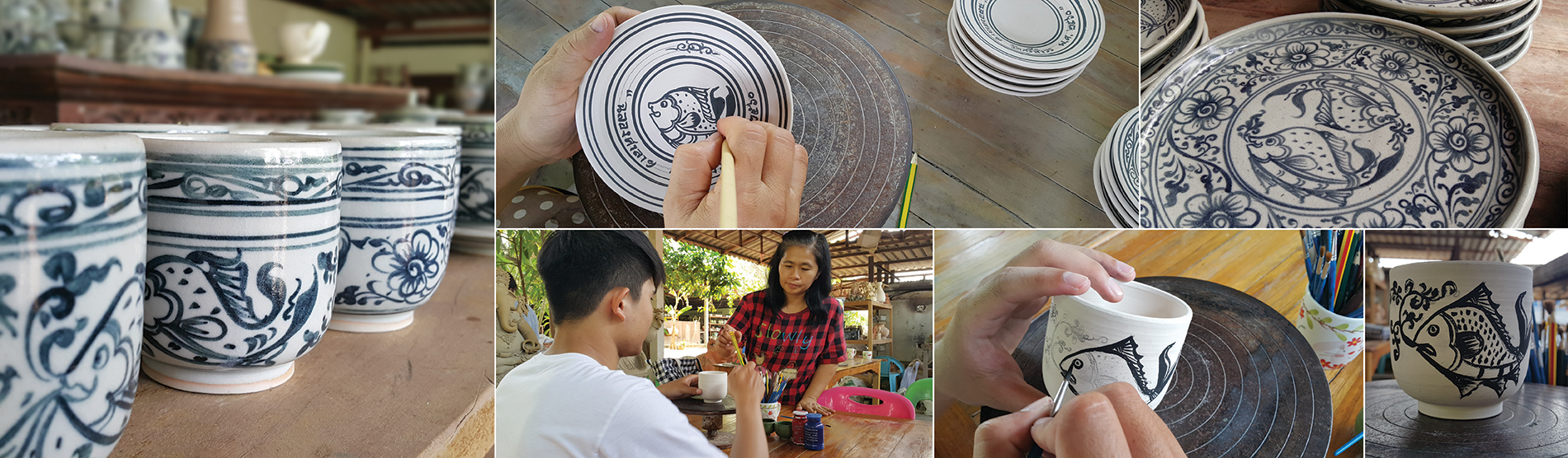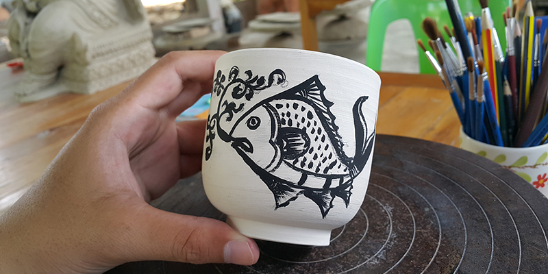 กิจกรรม : ร้านจะเตรียมอุปกรณ์ไว้ให้นักท่องเที่ยวทั้งสีเขียนลาย พู่กัน และภาชนะ นักท่องเที่ยวสามารถเลือกภาชนะได้เอง โดยจะมีตัวอย่างลวดลายไว้ให้ เช่น ลายปลา ลายดอกไม้ ฯลฯ นักท่องเที่ยวสามารถวาดลวดลายตามอัธยาศัย เมื่อนักท่องเที่ยวเขียนลวดลายต่างๆ เสร็จแล้ว ร้านจะต้องนำผลงานไปเคลือบและเผาในเตาเผาขนาดใหญ่ ด้วยอุณหภูมิ 1,250 องศา แต่จะต้องรอให้มีขอเต็มเตาก่อนจึงจะเผาได้ เมื่อได้ผลงานออกจากเตาแล้วทางร้านจะบริการจัดส่งชิ้นงานให้ลูกค้าถึงบ้าน โดยรวมใช้เวลาประมาณ 3-4 สัปดาห์