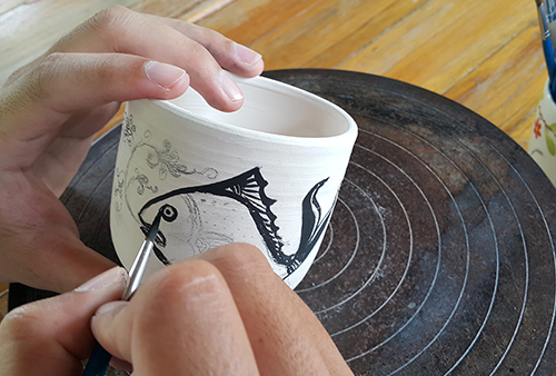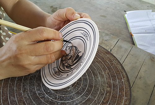 ดูลวดลายดั้งเดิมของสังคโลกเป็นแรงบันดาลใจในการทดลองเขียนลายสังคโลกด้วยตัวเอง