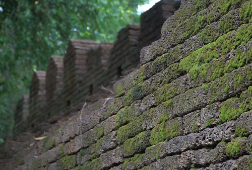 ช่วงเวลาเย็น 16.30 น. – 18.00 น. แสงอาทิตย์จะสาดส่องเล็ดลอดกิ่งไม้ใบที่ขึ้นตามแนวกำแพงเมืองจากป้อมประตูเตาอิฐข้ามถนนไปจนถึงป้อมมุมเมือง