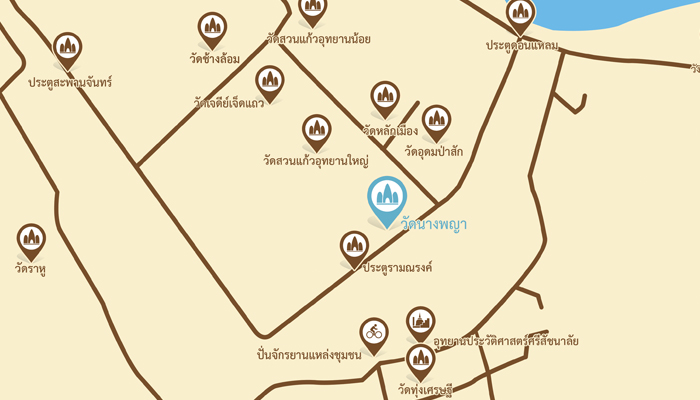 วัดนาพญา ตั้งอยู่ฝั่งขวาของประตูทางเข้า อยู่ใกล้กับวัดสวนแก้วอุทยานใหญ่ และวัดหลักเมือง