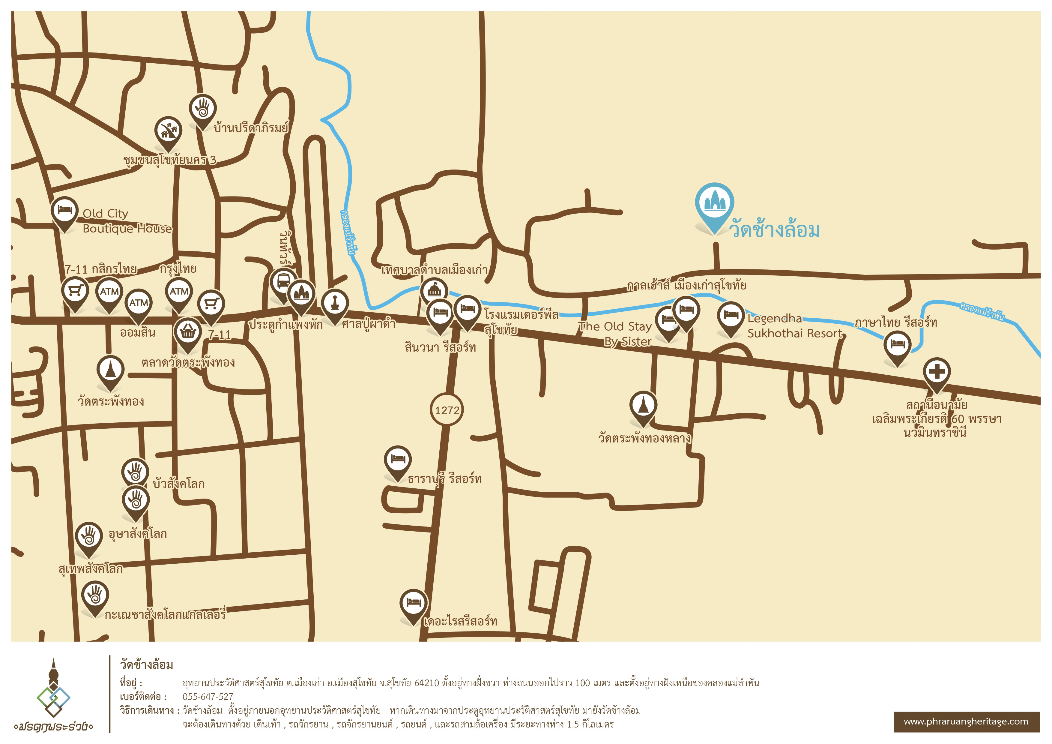 ชื่อผู้ติดต่อ : อุทยานประวัติศาสตร์สุโขทัยที่อยู่ : อุทยานประวัติศาสตร์สุโขทัย ต.เมืองเก่า อ.เมืองสุโขทัย จ.สุโขทัย 64210เบอร์โทรศัพท์ : พิกัด : 17.02002, 99.71966Facebook :
