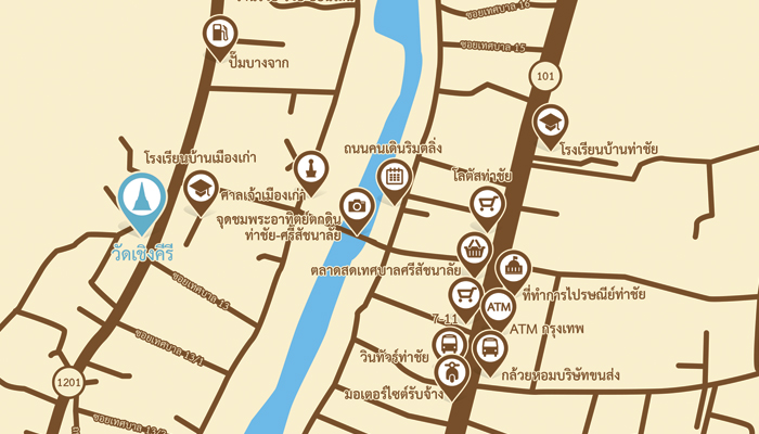 วัดเชิงคีรี ตั้งอยู่ตรงข้ามกับโรงเรียนบ้านเมืองเก่า