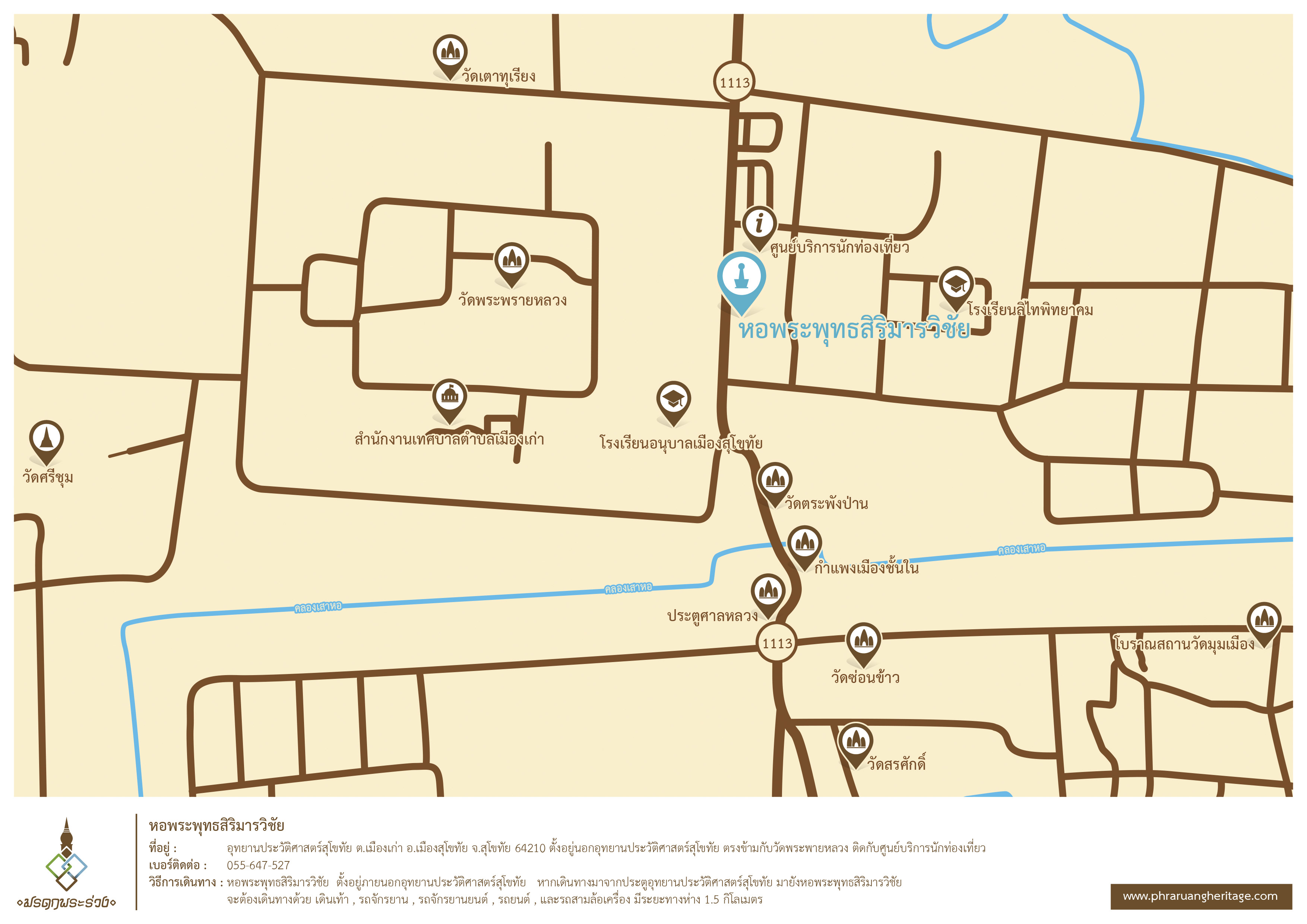 หอพระพุทธสิริมารวิชัย ตั้งอยู่นอกอุทยานประวัติศาสตร์สุโขทัย ตรงข้ามกับวัดพระพายหลวง ติดกับศูนย์บริการนักท่องเที่ยว