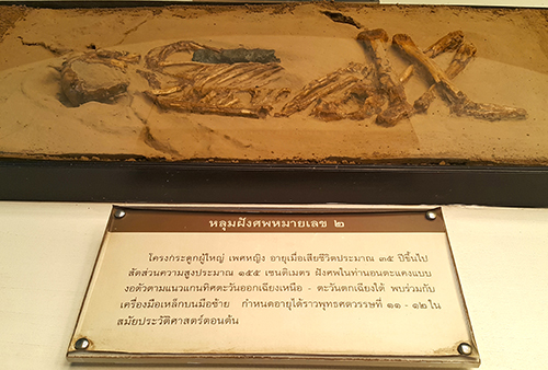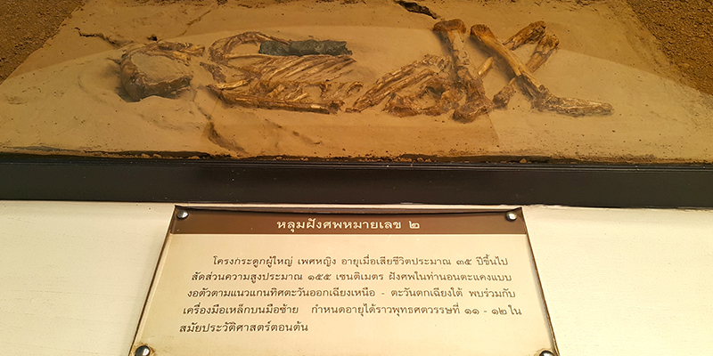 ในชั้นดินลึกประมาณ 7-8 เมตรนี้ เราจะเห็นซากโบราณสถาน โบราณวัตถุต่างยุคต่างสมัยจมอยู่ ย้อนหลังจากชั้นดินปัจจุบัน ย้อนไปถึงสมัยอยุธยา สุโขทัย ยุคลพบุรี ทวารวดีต่อเนื่องไปจนถึงสมัยหัวเลี้ยวหัวต่อยุคก่อนประวัติศาสตร์สู่ยุคประวัติศาสตร์ ราวๆ 900 – 1,000 ปีที่แล้ว โดยเฉพาะโครงกระดูกมนุษย์ จำนวน 15 โครง ซึ่งถูกฝังอยู่ในชั้นดินที่ลึกที่สุด สะท้อนพิธีการฝังศพของคนสมัยโบราณ รวมถึงยืนยันว่ามีคนอยู่ที่นี่มานานนับพันปีมาถึงปัจจุบัน และยังทำให้เข้าใจวิธีการทำงานของนักโบราณคดีในสมัยปัจจุบันอีกด้วย