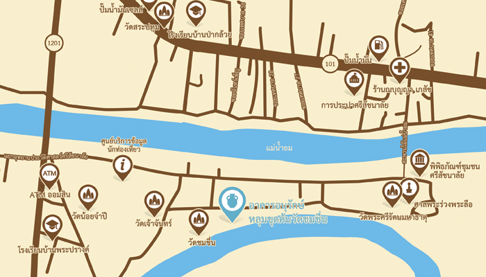 ตั้งอยู่หน้าวัดชมชื่น ใกล้กับวัดพระปรางค์ ติดริมแม่น้ำยม