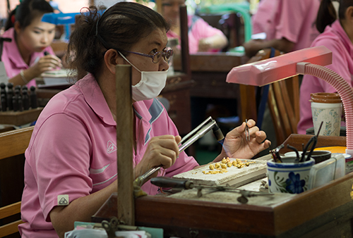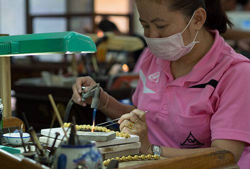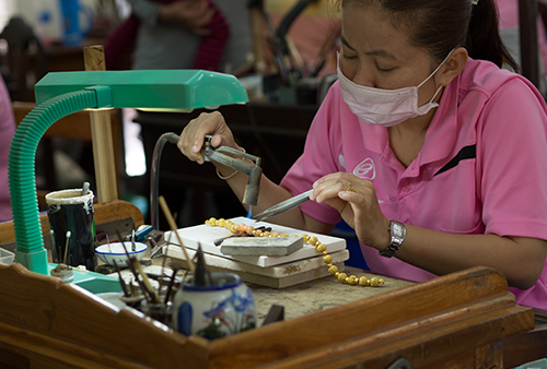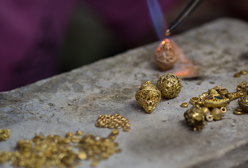 สามารถศึกษา และเยี่ยมชมขั้นตอนกระบวนการผลิตเครื่องประดับทองโบราณ ศรีสัชนาลัย โดยไม่มีค่าใช้จ่ายใดๆ