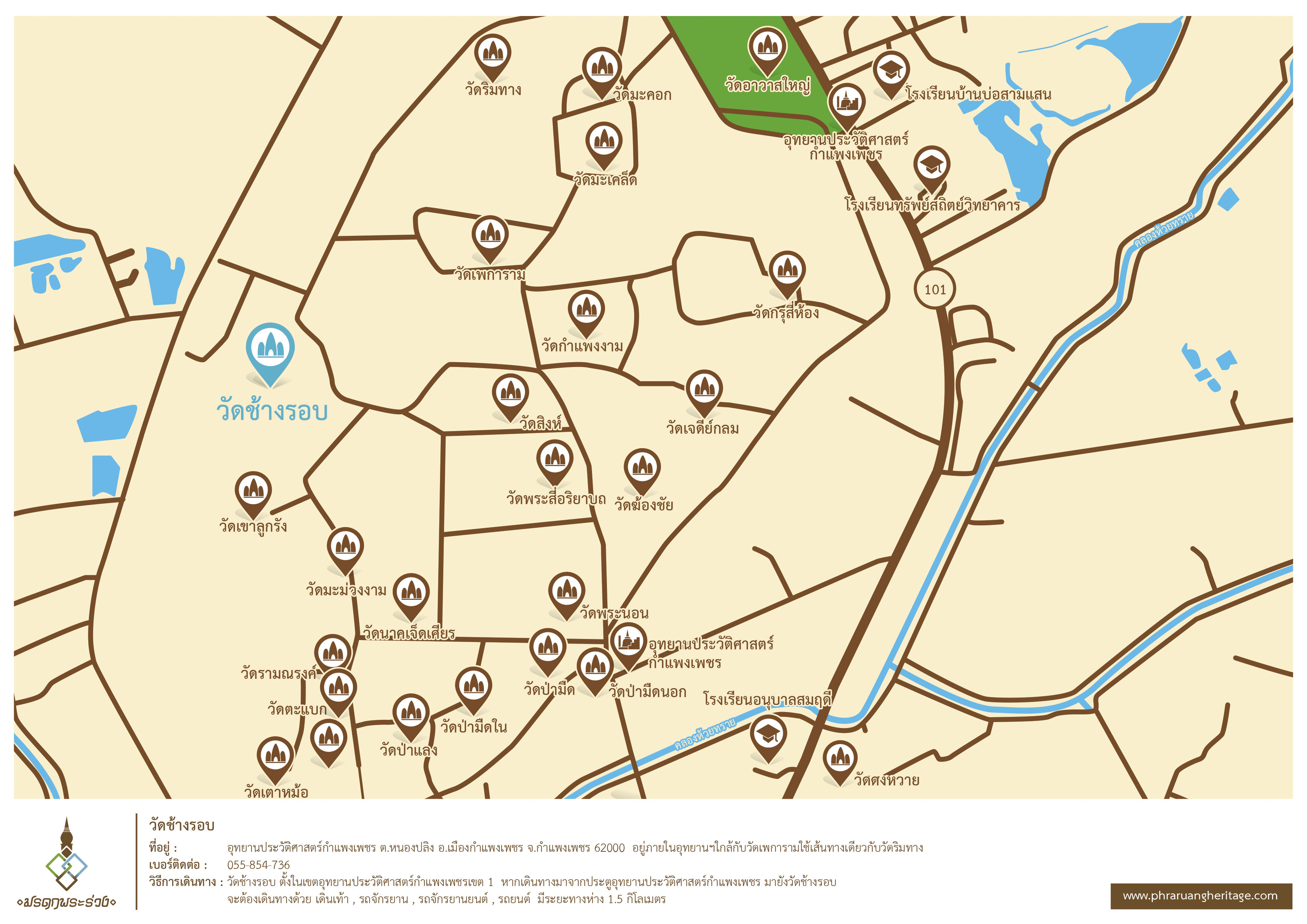ชื่อผู้ติดต่อ : อุทยานประวัติศาสตร์กำแพงเพชรที่อยู่ : อุทยานประวัติศาสตร์กำแพงเพชร ต.หนองปลิง อ.เมืองกำแพงเพชร จ.กำแพงเพชร 62000เบอร์โทรศัพท์ : พิกัด : 16.5029250, 99.5096834