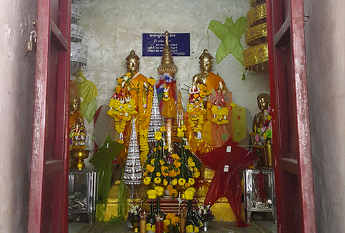 ด้านหน้าพระปรางค์ มีพระวิหารหลวงซึ่งภายในประดิษฐานพระพุทธรูปปางมารวิชัย ปูนปั้น ศิลปะสุโขทัยเป็นพระพุทธรูปประธาน รายล้อมด้วยพระพุทธรูปขนาดย่อม เบื้องขวาของพระประธาน มีพระพุทธรูปลีลา ปูนปั้น ซึ่งมีความงามล้ำเลิศ เป็นหนึ่งในพระพุทธรูปที่ผู้มาเยือนสุโขทัยไม่ควรพลาดสักการะ
