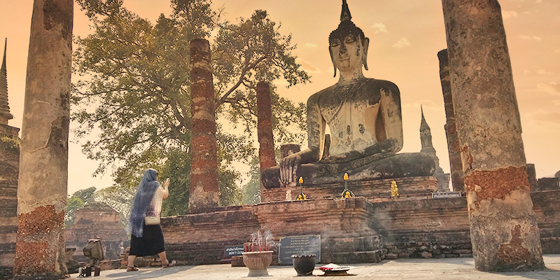 แม้บัดนี้ร่างกายของอาณาจักรสุโขทัยจะเสื่อมโทรมลงตามวันเวลา แต่ลมหายใจของสุโขทัยยังคงแจ่มชัด การได้มาเยือนวัดมหาธาตุจึงเท่ากับเราได้สัมผัสจิตวิญญาณของสุโขทัยซึ่งซึมซาบอยู่ระหว่างอิฐ หิน ปูน ทราย