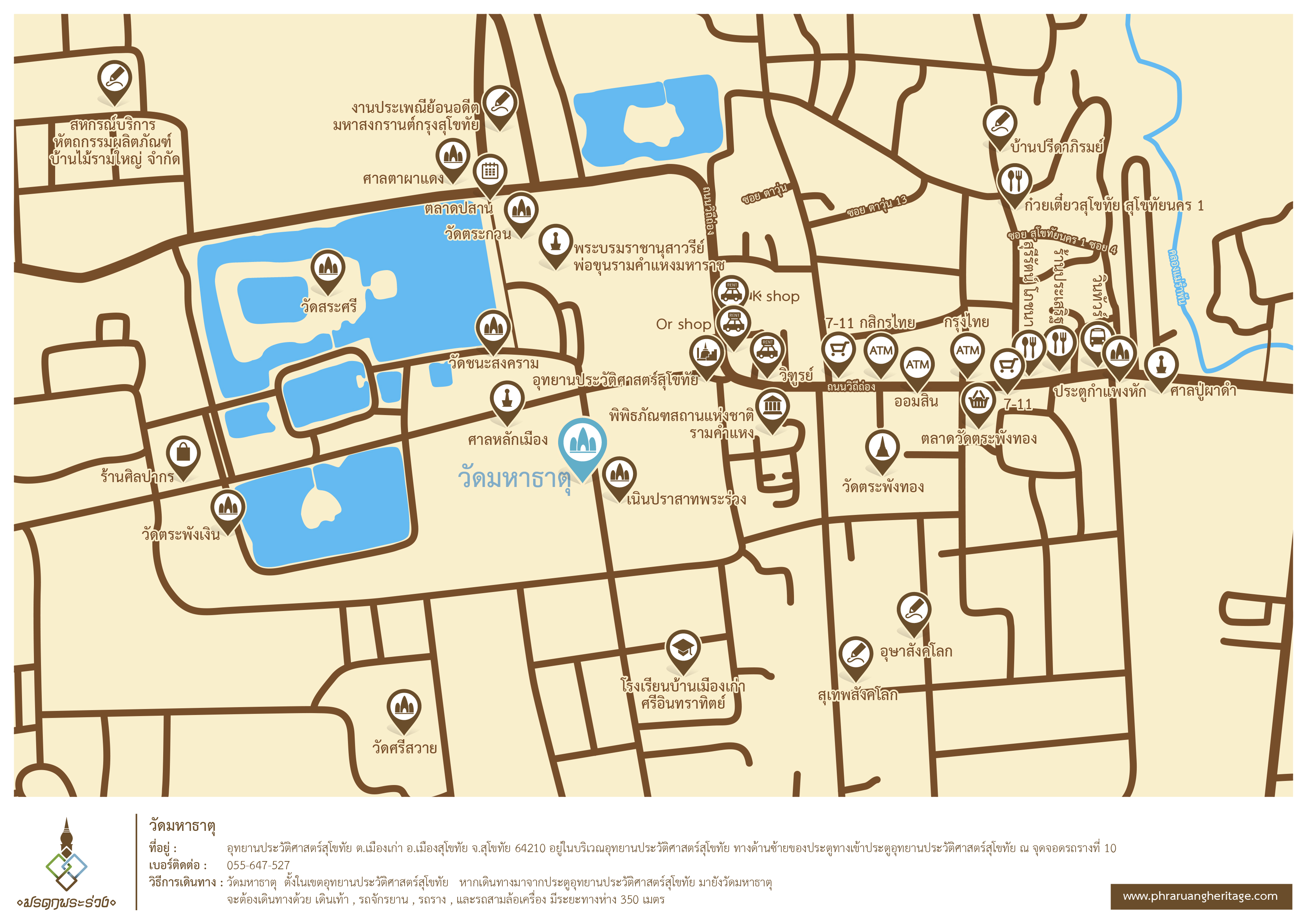 ชื่อผู้ติดต่อ : อุทยานประวัติศาสตร์สุโขทัยที่อยู่ : อุทยานประวัติศาสตร์สุโขทัย ต.เมืองเก่า อ.เมืองสุโขทัย จ.สุโขทัย 64210เบอร์โทรศัพท์ : พิกัด : 17.016949, 99.703707Facebook :