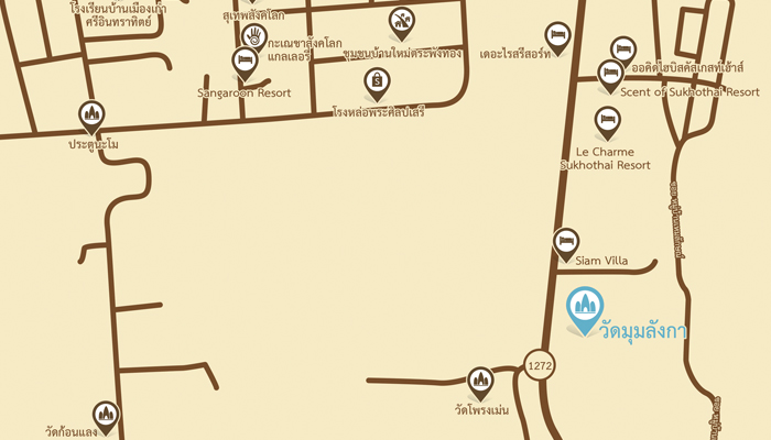 อยู่นอกอุทยานประวัติศาสตร์สุโขทัยทางทิศใต้ ประมาณ 2.1 กิโลเมตร