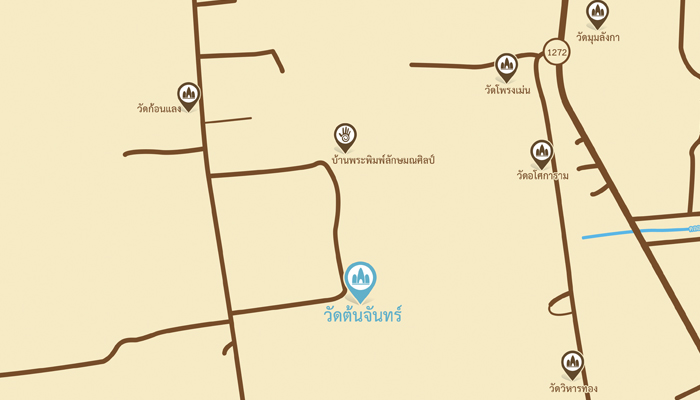 วัดต้นจันทร์ ตั้งอยู่นอกกำแพงเมืองสุโขทัยทางทิศใต้