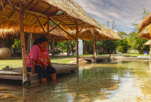 บ่อน้ำพุร้อนพระร่วง ตั้งอยู่ที่บ้านลานหิน ต.ลานดอกไม้ อ.เมือง จ.กำแพงเพชร ตามตำนานเล่าว่า ครั้งสมัยกรุงสุโขทัยเป็นราชธานี สมเด็จพระร่วงเจ้าได้เสด็จประพาสป่าล่าสัตว์มาถึงบริเวณบ่อน้ำพุร้อนแห่งนี้ วันหนึ่งพระองค์ทรงเห็นไก่ป่าตัวหนึ่งมีลักษณะสวยงามและมีเสียงขันไพเราะ จึงทรงให้นายพรานที่ตามเสด็จต่อไก่ป่าตัวนั้นจนสมพระราชประสงค์ ในวันนั้นพระองค์และนายพรานล่าสัตว์อื่นไม่ได้เลย จึงทรงให้ทหารนำไก่ป่าไปปรุงอาหารสำหรับเสวย แต่เนื่องจากบริเวณดังกล่าวเป็นป่าลึก ไม่มีบ้านเรือนราษฎร จึงไม่มีไฟใช้ทำอาหาร พระองค์จึงทรงสาปน้ำที่อยู่ในบึงบริเวณใกล้ๆ ให้เป็นน้ำร้อน บึงดังกล่าวจึงเรียกว่า "บึงพระร่วงสาป" ต่อมาภายหลังเรียกสั้นลงว่า "บึงสาป"