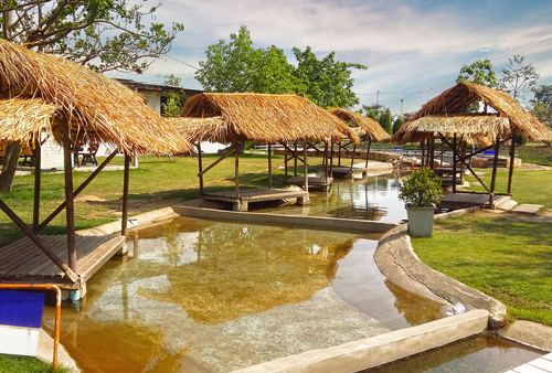 ภายในพบบ่อน้ำพุที่ผุดขึ้นมาทั้งหมด 5 จุด ความร้อนอยู่ที่ 45-60 องศา และได้รับการรับรองจากกระทรวงสาธารณสุขว่าสะอาดปลอดภัยไร้สารปนเปื้อน ภายในมีการจัดสถานที่สำหรับให้บริการอาบน้ำแร่แบบส่วนตัว โรงอาบน้ำแร่รวมแยกชาย หญิง, อ่างอาบน้ำร้อน, อ่างแช่, นวดฝ่าเท้า และนวดแผนโบราณ นอกจากนี้ยังมีที่พักรองรับนักท่องเที่ยวที่ต้องการพักแบบค้างคืนให้บริการอีกด้วย ด้านหน้าของบ่อพุร้อนมีศาลพระร่วง ซึ่งเป็นสถานที่สักการะขอพรของชาวบ้านและนักท่องเที่ยว