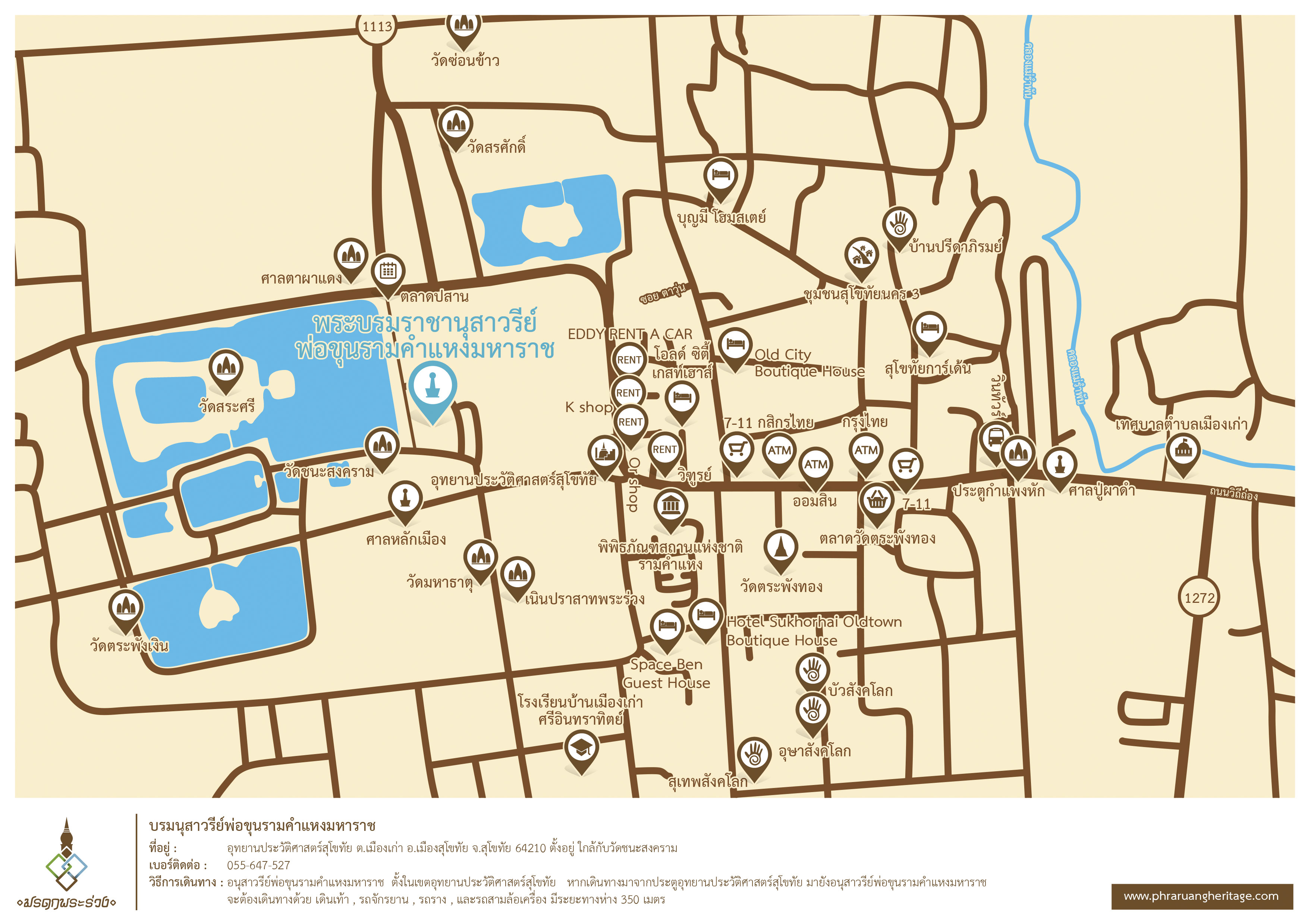 ชื่อผู้ติดต่อ : อุทยานประวัติศาสตร์สุโขทัยที่อยู่ : อุทยานประวัติศาสตร์สุโขทัย ต.เมืองเก่า อ.เมืองสุโขทัย จ.สุโขทัย 64210เบอร์โทรศัพท์ : พิกัด : 17.02001, 99.70465Facebook :