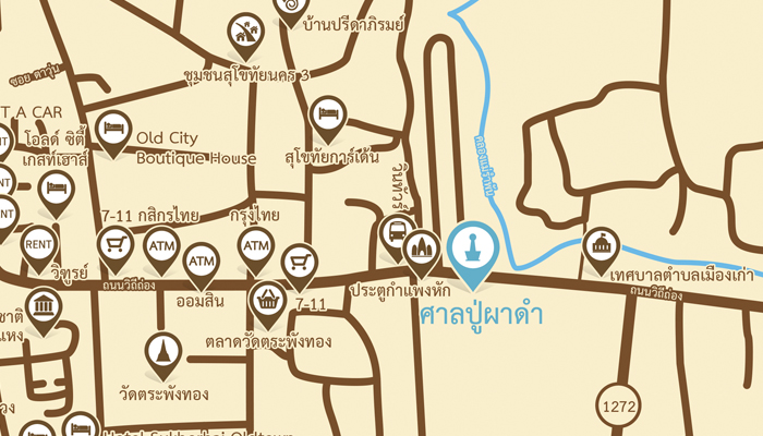ศาลปู่ผาดำ ตั้งอยู่หน้าประตูกำแพงหัก ทางทิศตะวันออกของอุทยานประวัติศาสตร์สุโขทัย